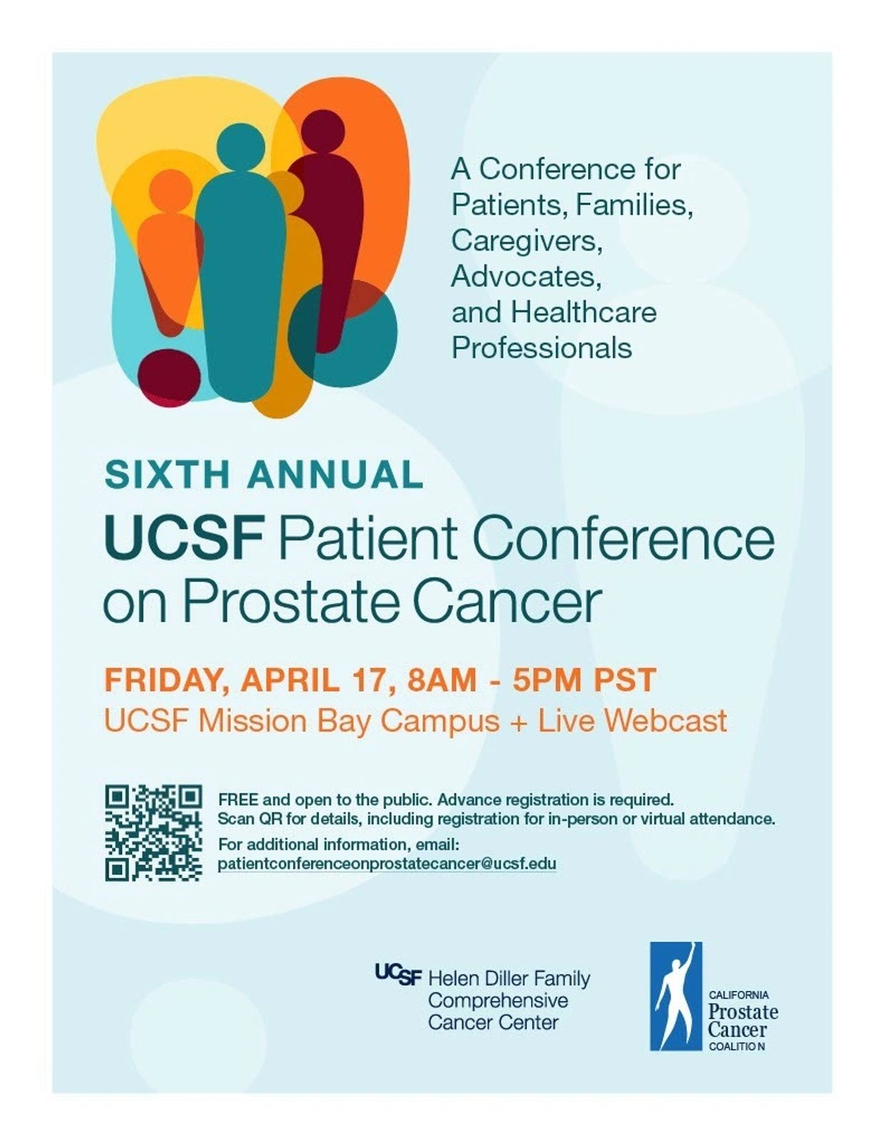 For more information, scan the QR code or go to https://cancer.ucsf.edu/research/programs/prostate/patient-conference